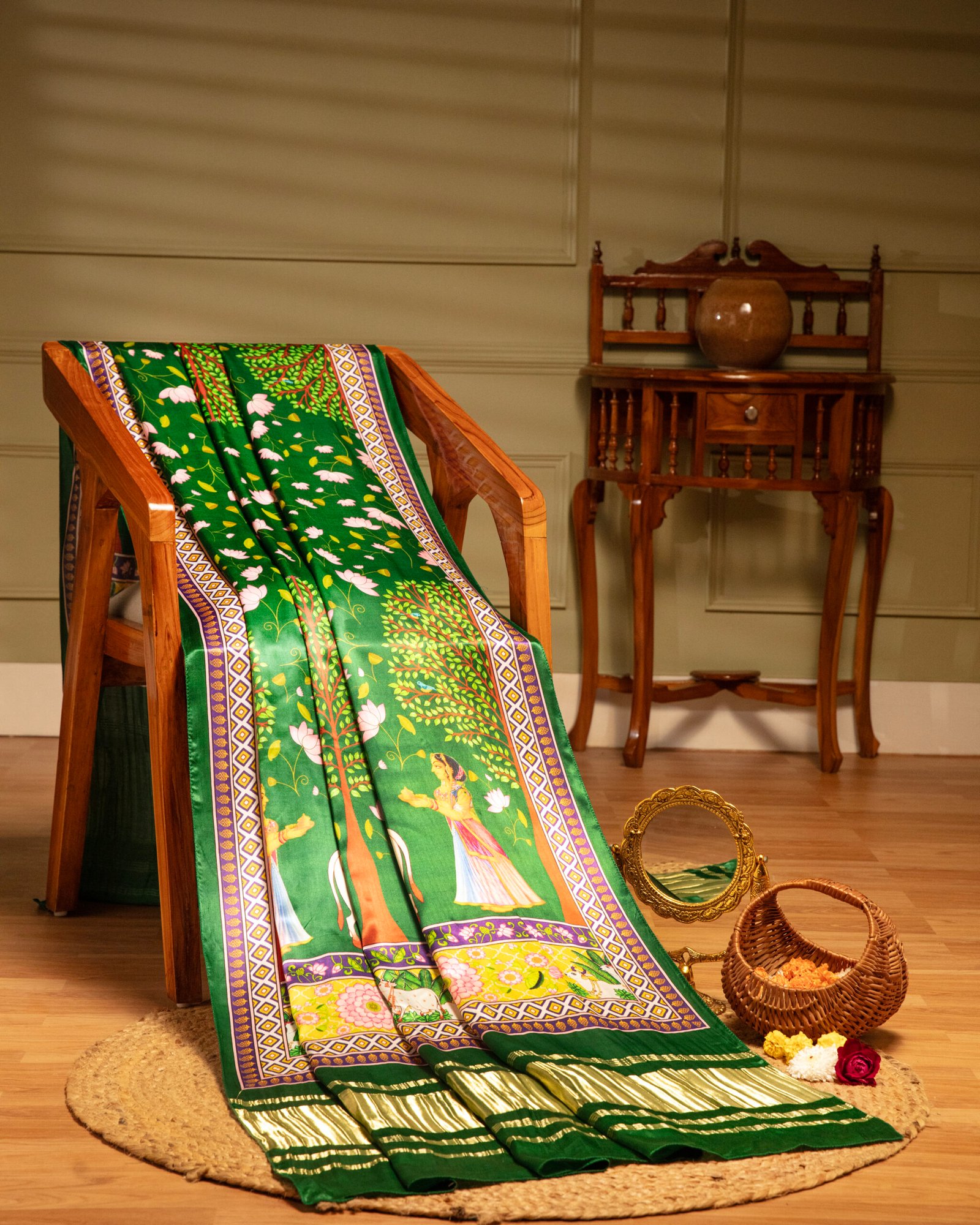 Be the first to review “Green Pichwai With Lotus Print Dupatta” Cancel reply