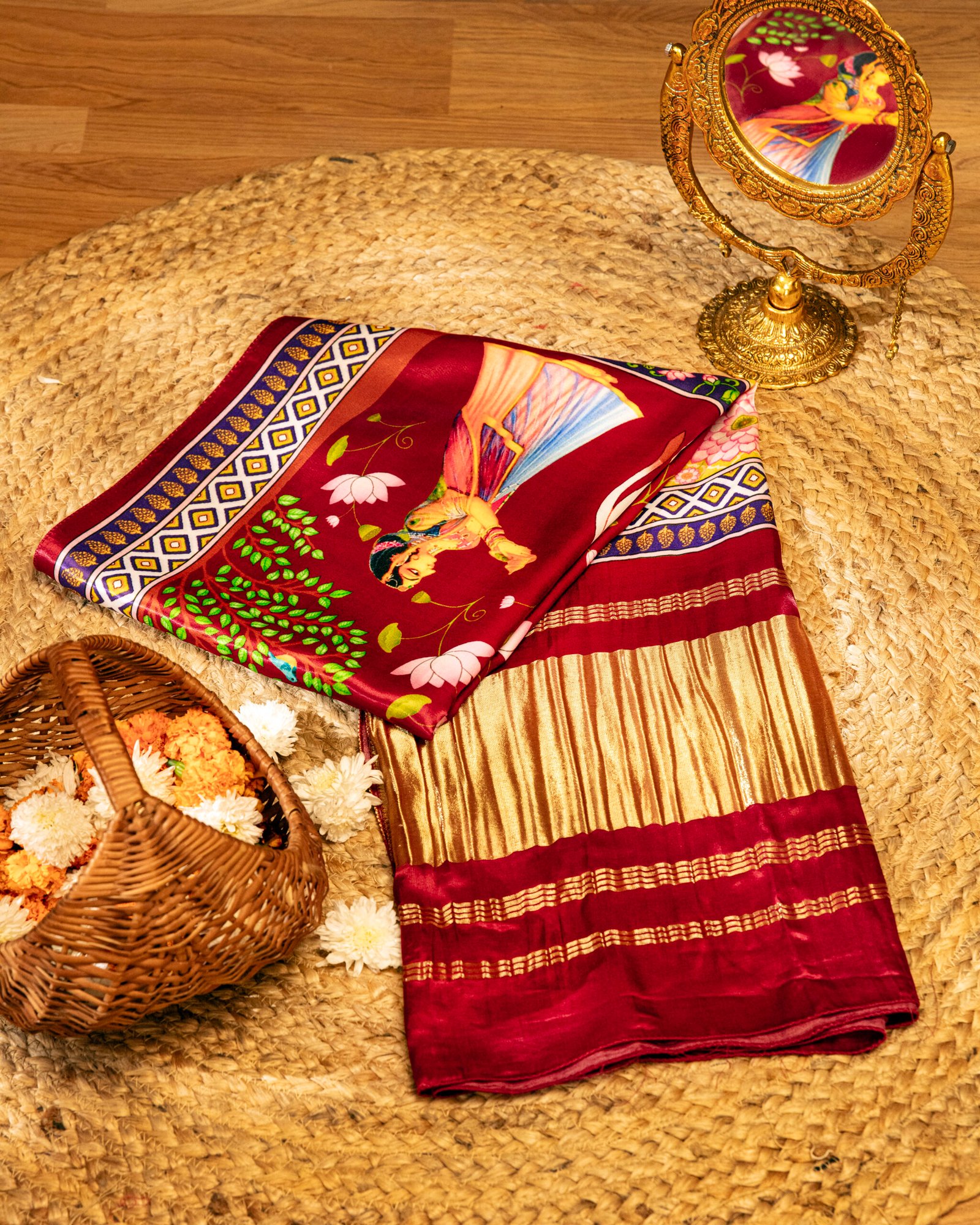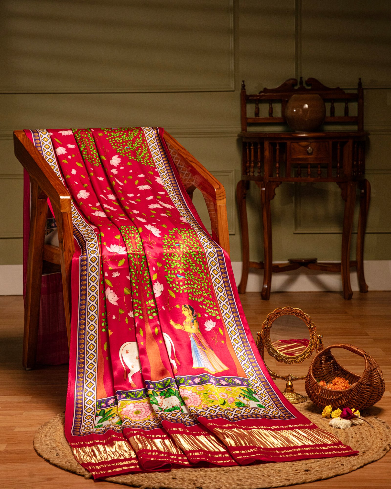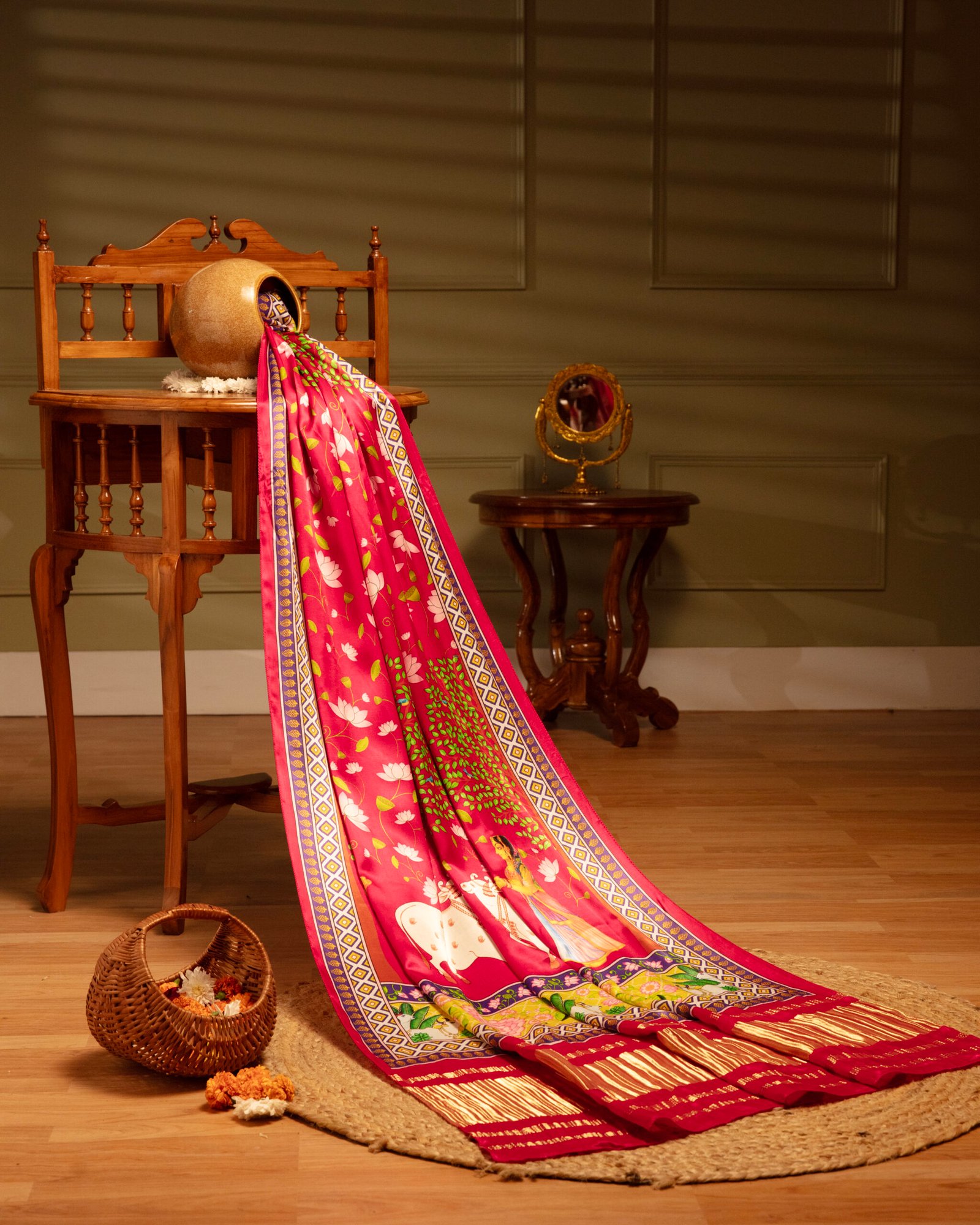 Rani Pichwai With Lotus Print Dupatta With tissue pallu