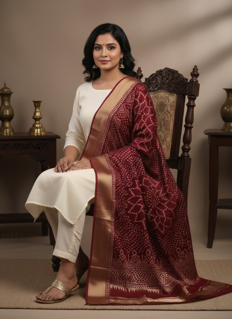 A vibrant Bandhani, a regal Banarasi, or a soft organza dupatta can completely change the mood of your attire.